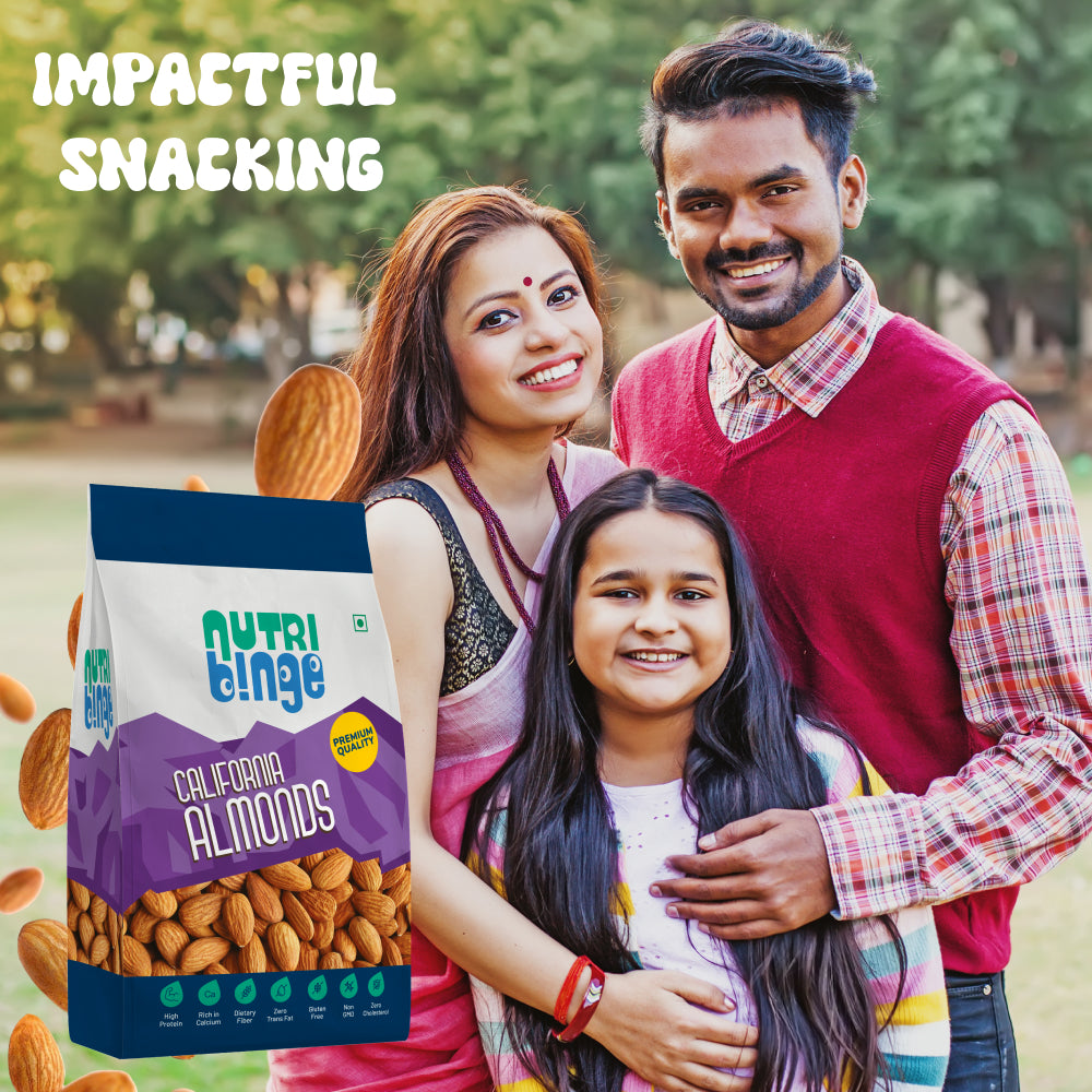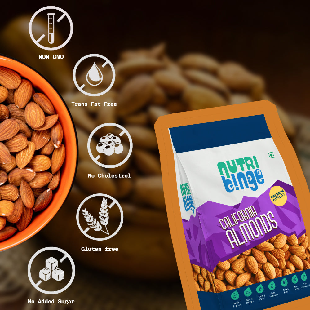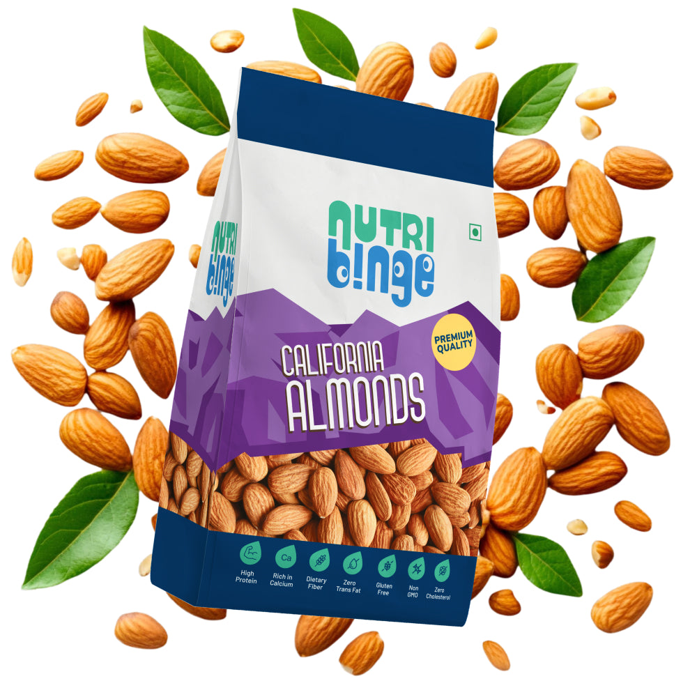 California Almonds: Nutri Binge Almonds are sourced from the beautiful San Joaquin Valley in California where we get the world’s most premium quality almonds.