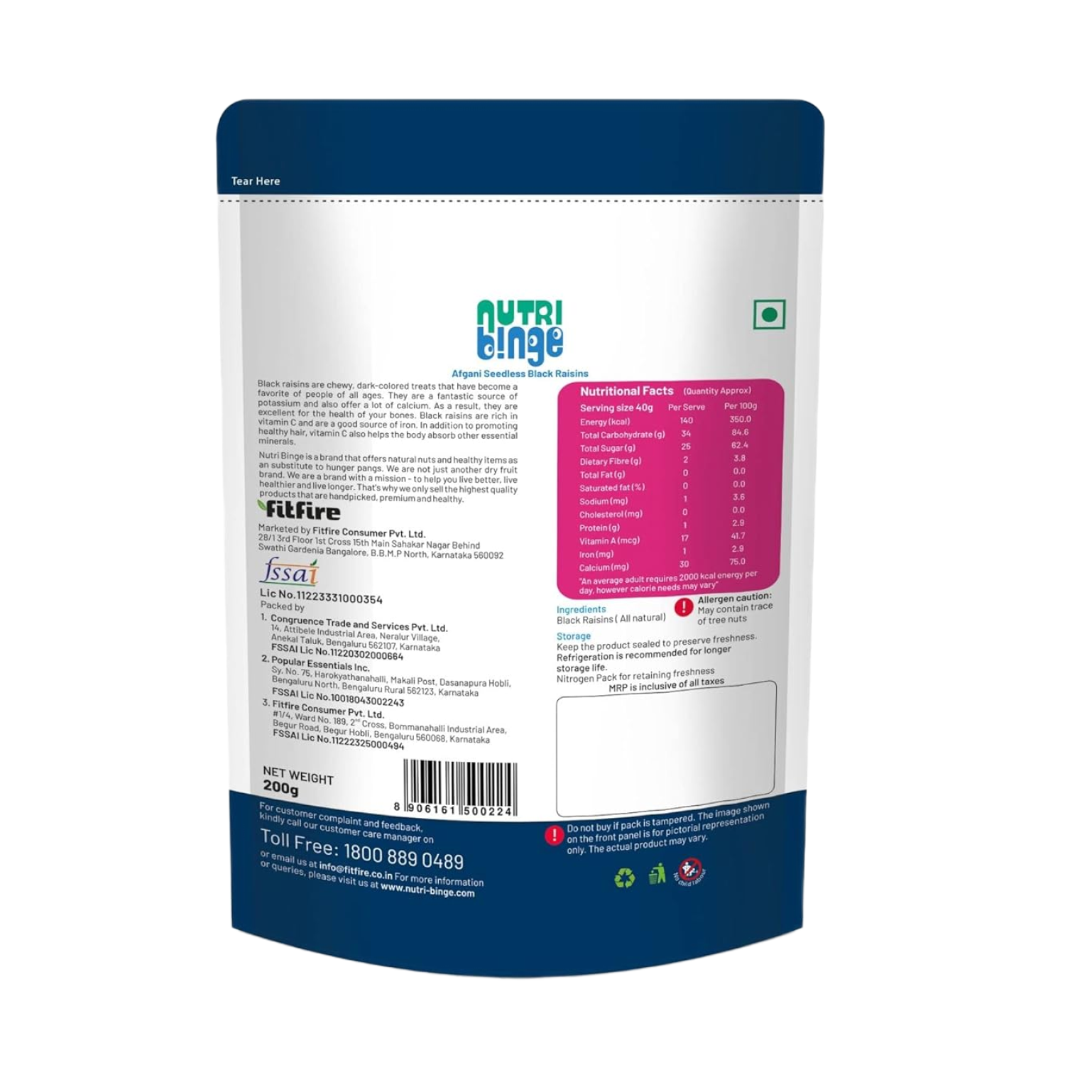 Afghani Seedless Black Raisins 200g (Pack of 3)