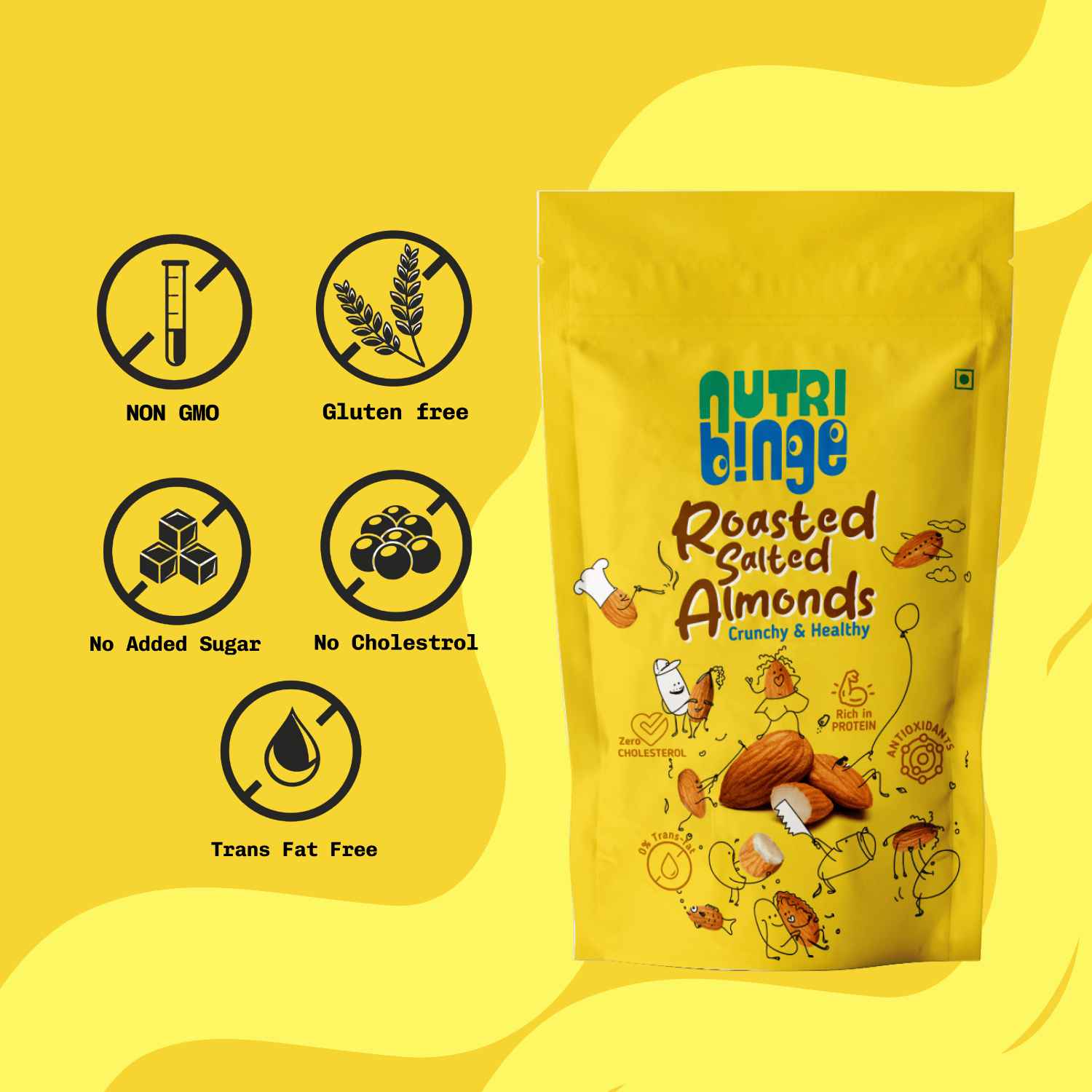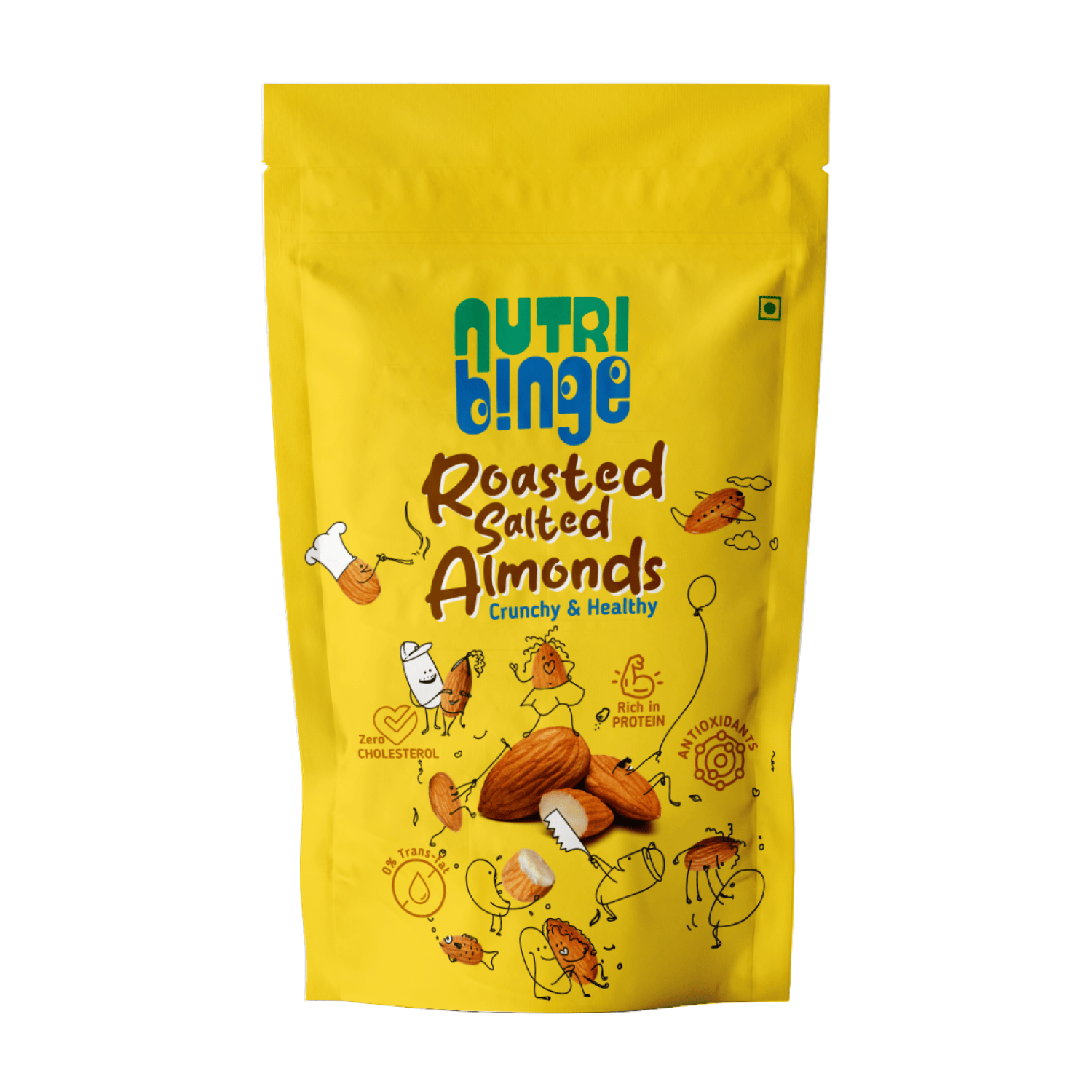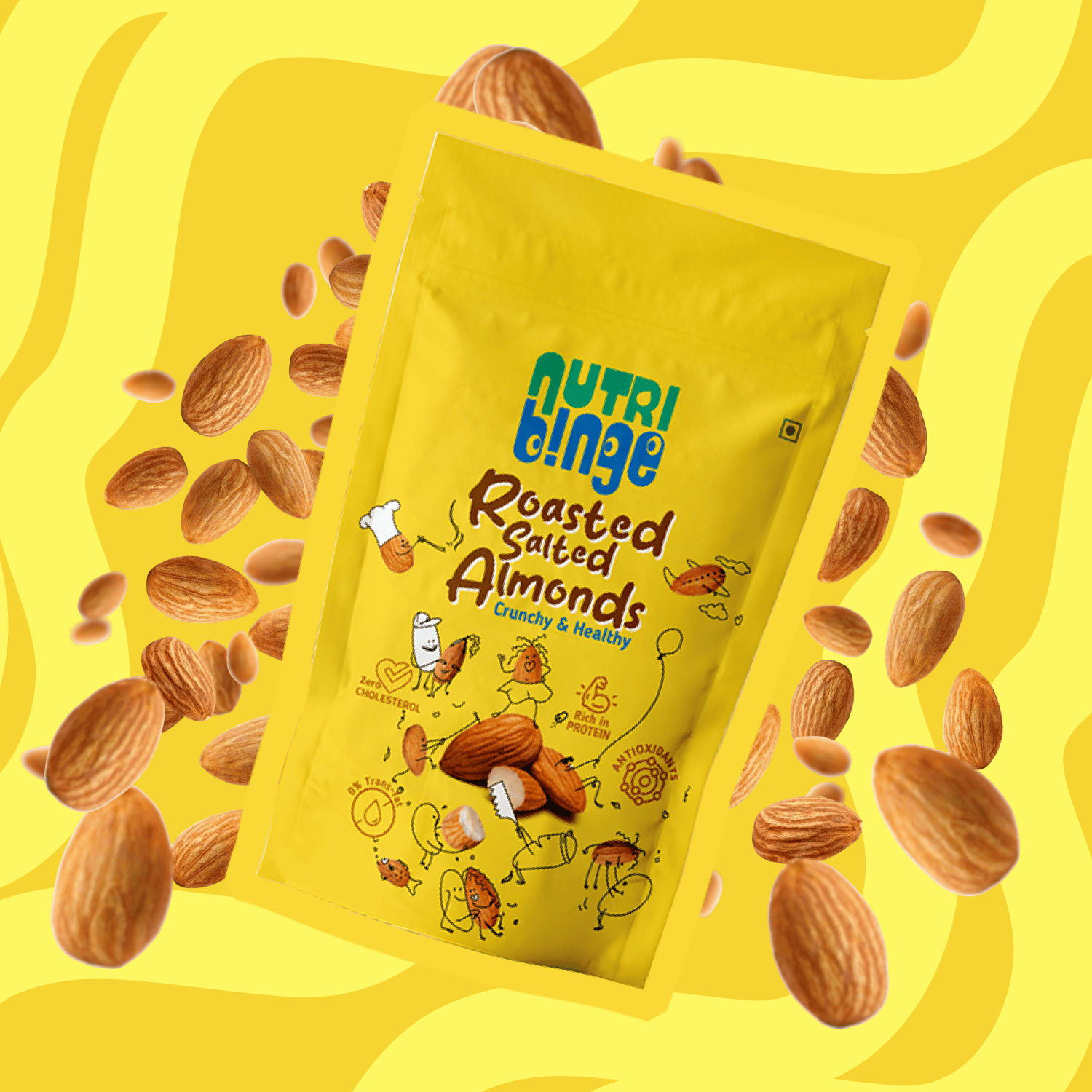 When Health meets Binge : Now healthy food is gonna be yummy too. The crunchy handpicked almonds are carefully roasted with a layered coating of iodised salt slowly converting Nutri Binge Roasted Salted Almonds into an irresistible snack to binge on. The best part is all this comes in the form of clean, healthy snacking free of preservatives, Trans Fats and Cholesterol.